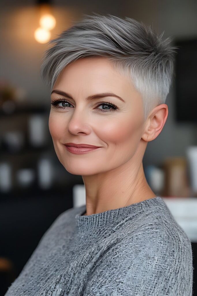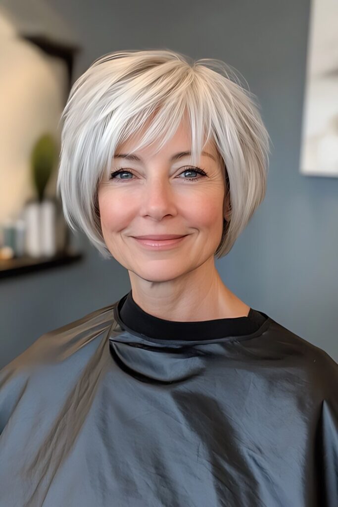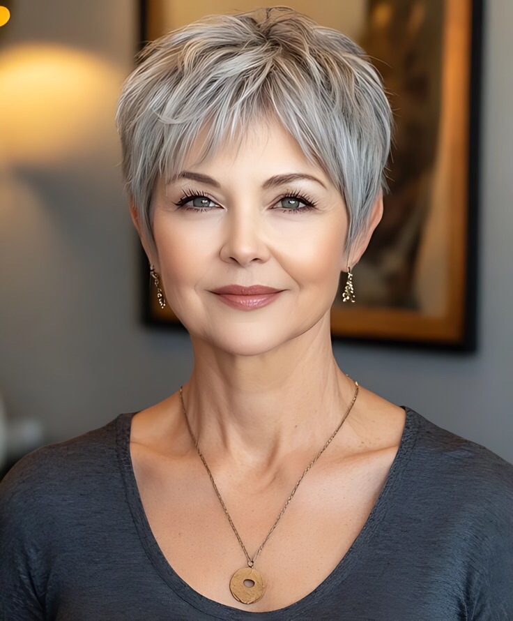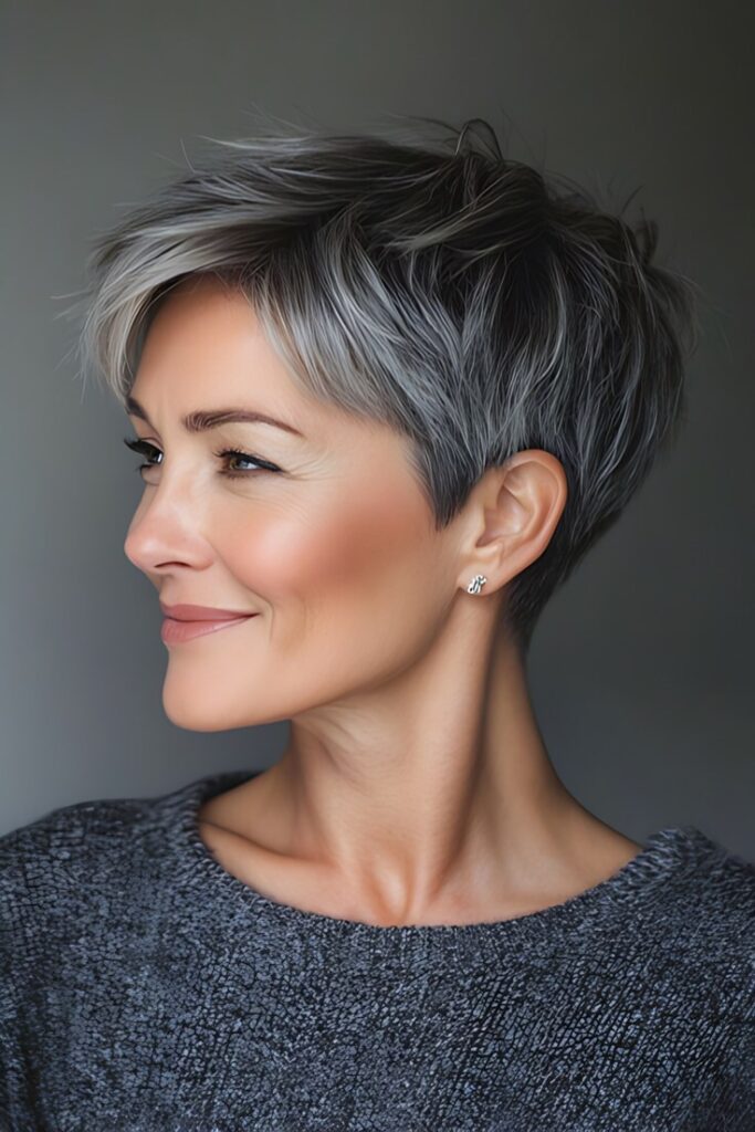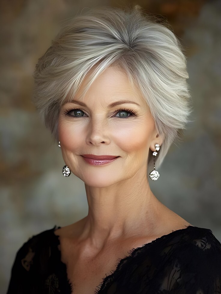 The pixie cut is a perennial favorite for mature women—and for good reason. This ultra-short style is lightweight, easy to maintain, and endlessly versatile. Whether you opt for a soft, feathered finish or a sleek, polished look, a pixie cut highlights your facial structure and brings attention to your eyes and cheekbones.