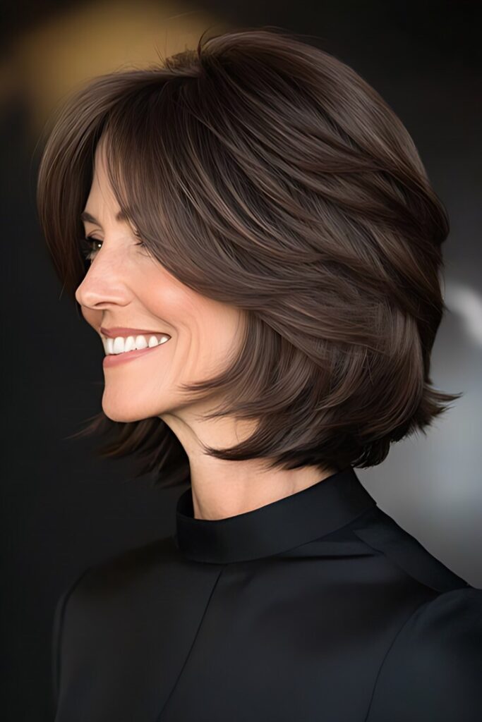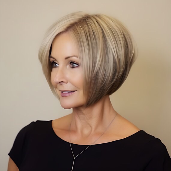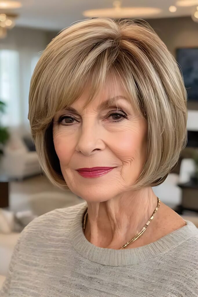 For a polished, high-fashion look, the blunt bob is unbeatable. This cut features a sharp, even length with no layers, creating a clean, striking silhouette. It’s a favorite among stylish mature women who appreciate precision and elegance.