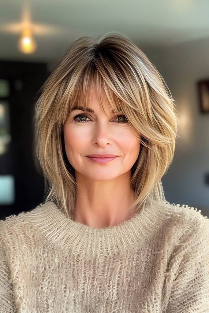 The shag cut is back—with a mature twist! This layered, feathered style adds volume, movement, and a touch of ‘70s glam to short hair.