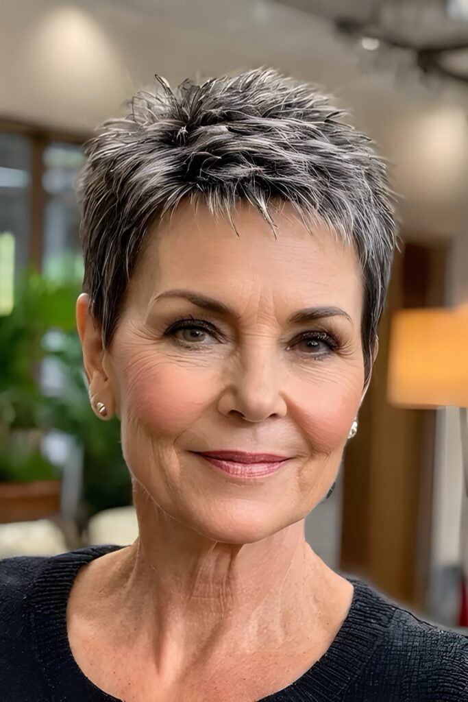 The pixie cut is a go-to for mature women who want a stylish, youthful look with minimal effort. This short haircut works wonders for fine or thinning hair, as it creates the illusion of thickness and texture.