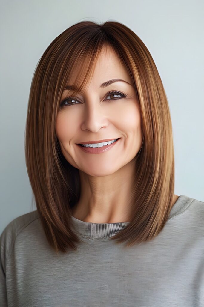 - Square face: Soft layers and side-swept bangs balance strong jawlines.