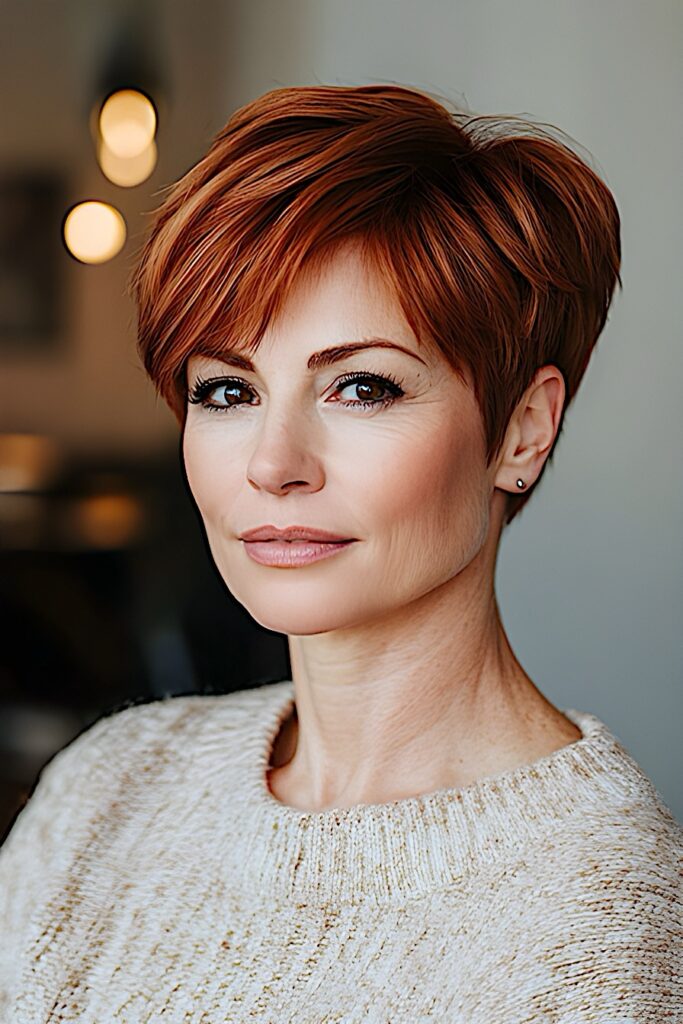 The pixie cut is a bold and daring choice that exudes confidence. This short hairstyle emphasizes facial features and can make you look younger.