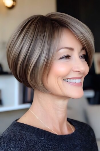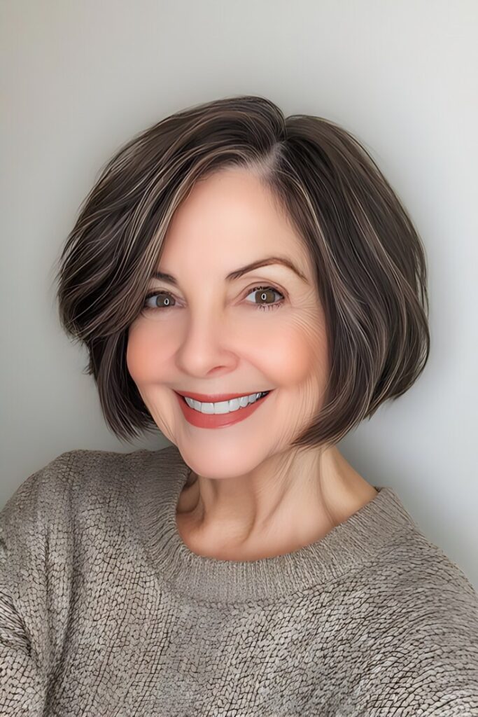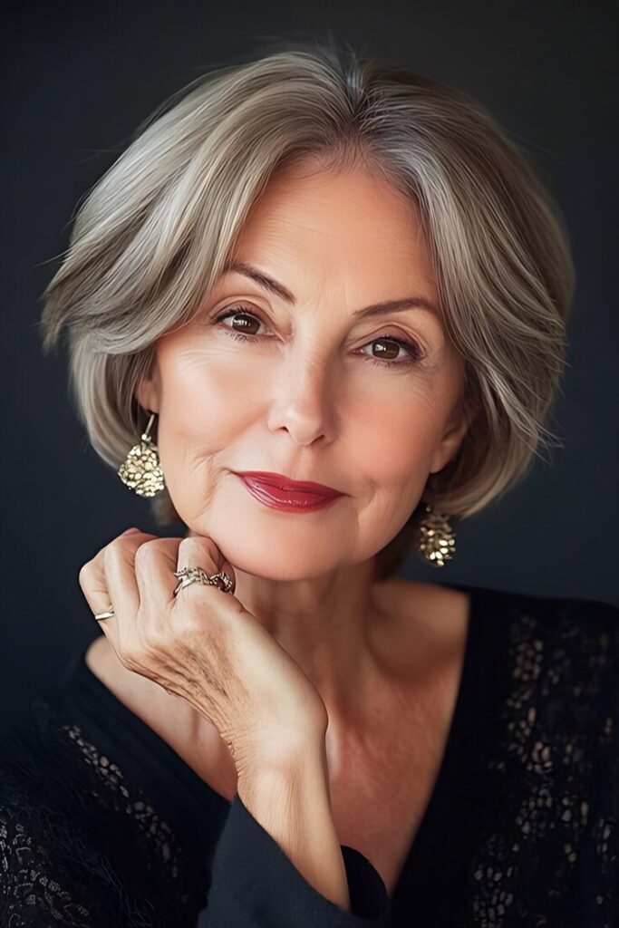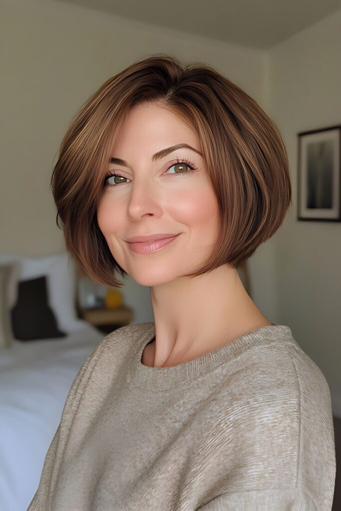 - Blunt Bob – A sleek chin-length bob highlights your symmetry.