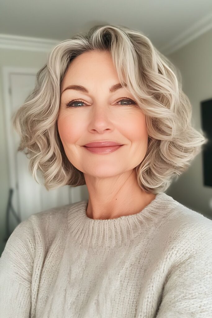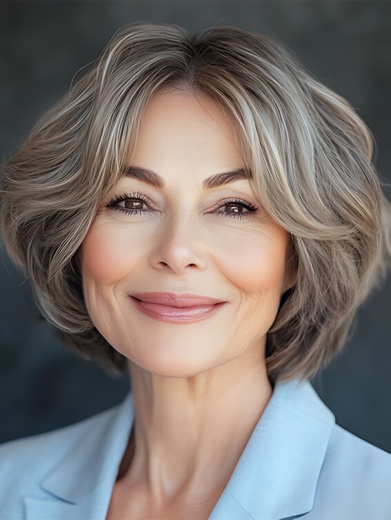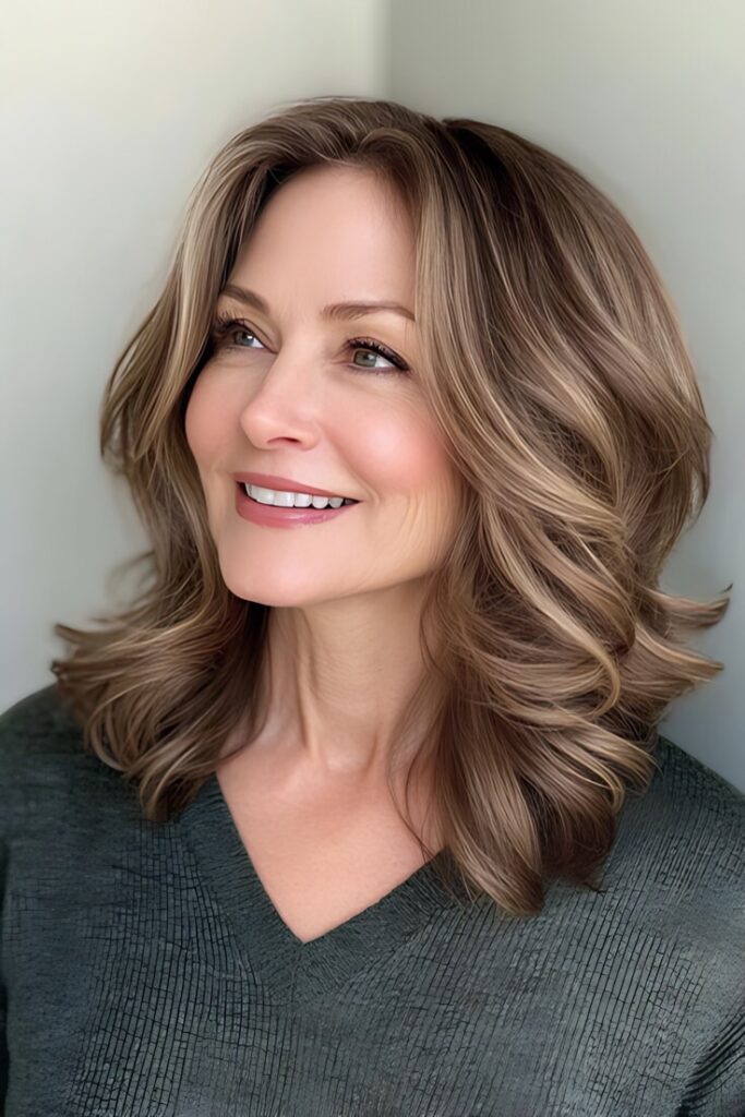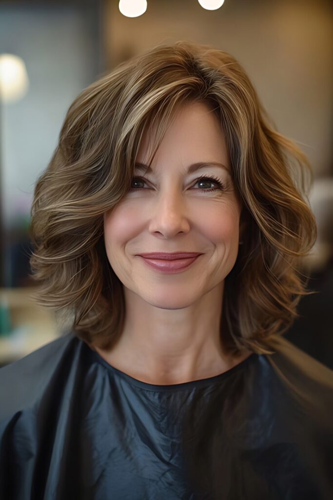 - Full, Wavy Lob – Adds volume on the sides.