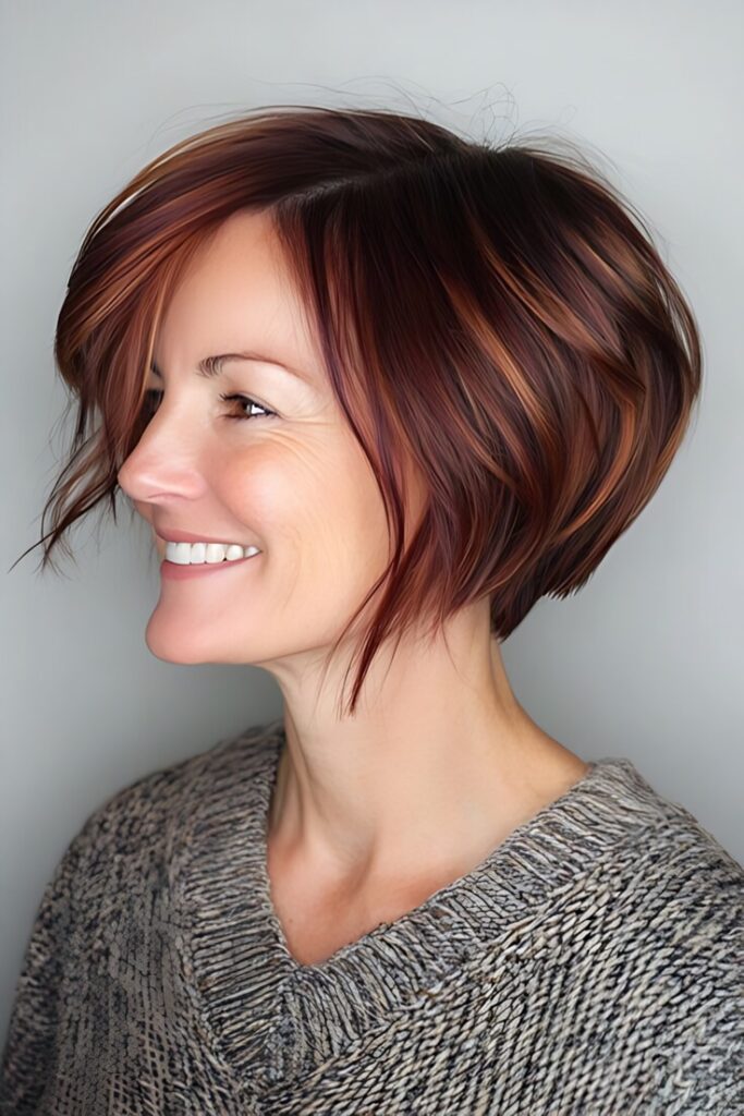 - Asymmetrical Bob – Adds angles and breaks the roundness.
