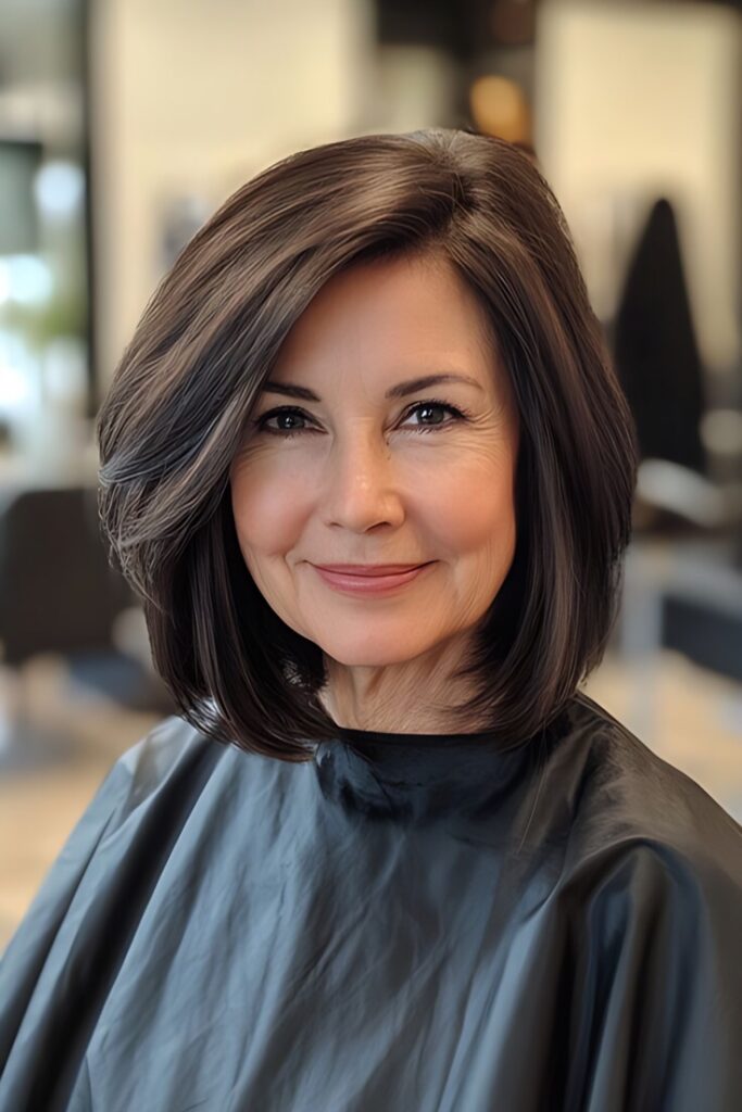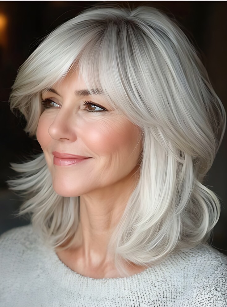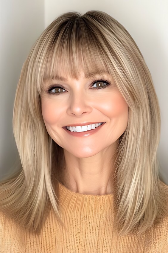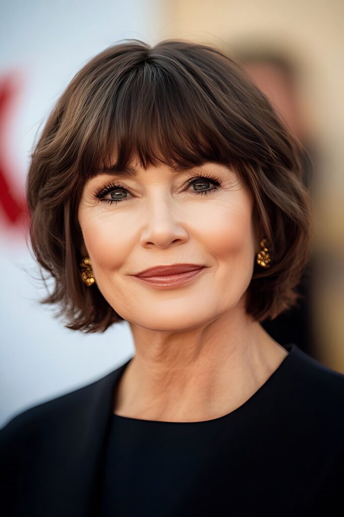 - Side-Swept Bangs – Softens the forehead and draws attention to your eyes.