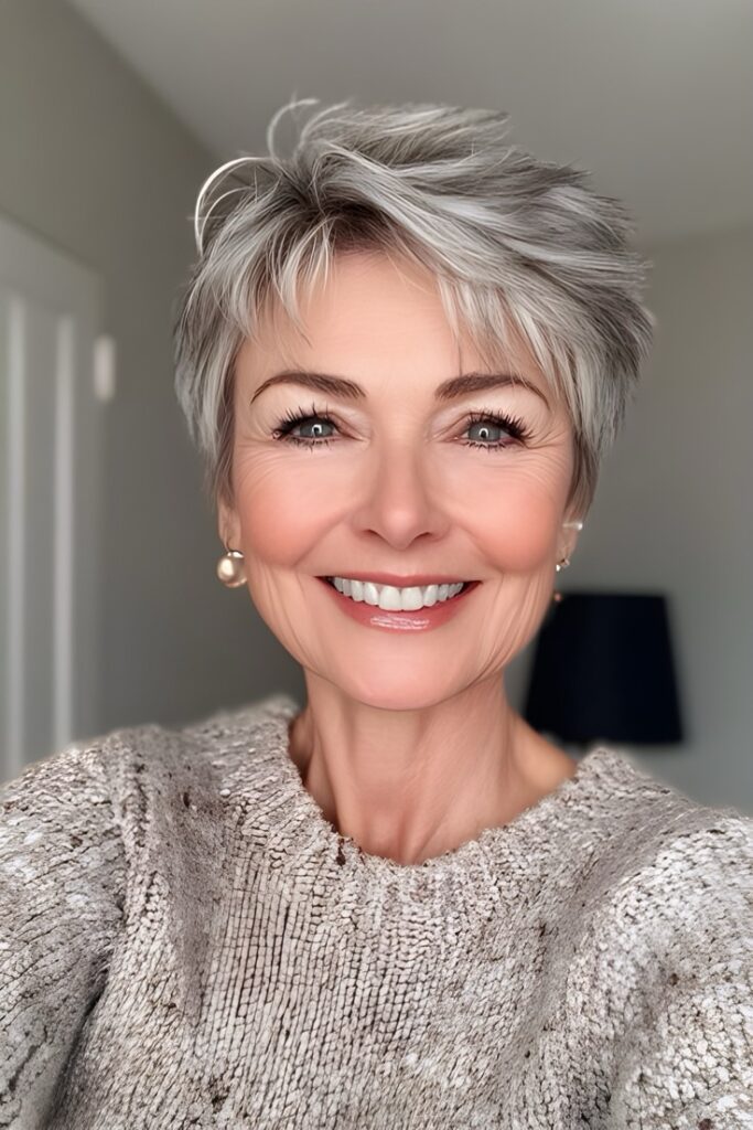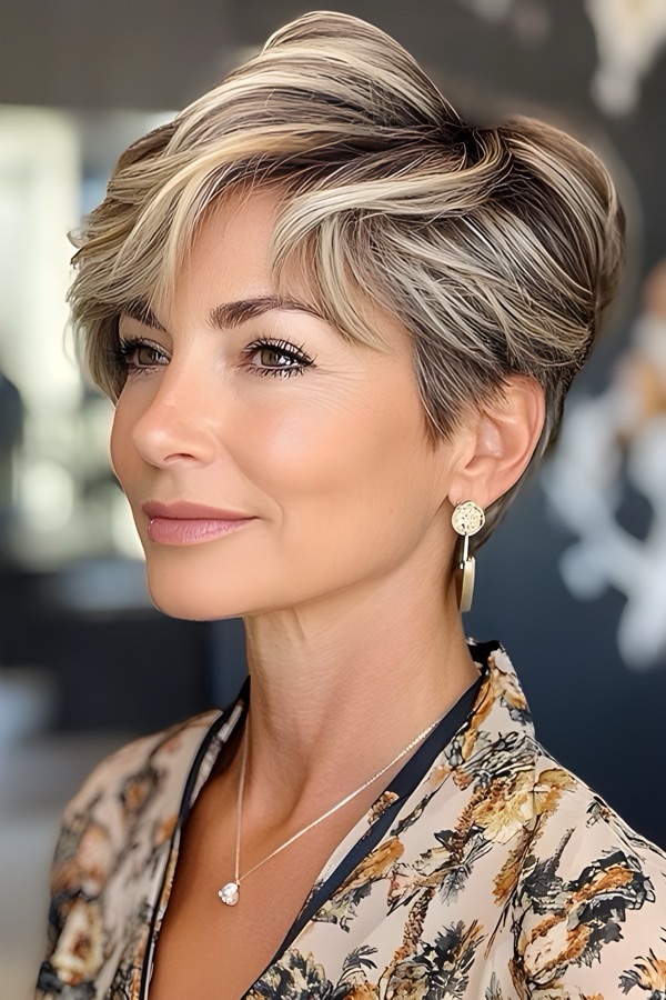 Aging hair doesn’t mean sacrificing style. Opt for softer haircuts that add volume, like layered bobs or pixie cuts. Embrace gray hair with silver-enhancing shampoos or experiment with highlights for dimension.