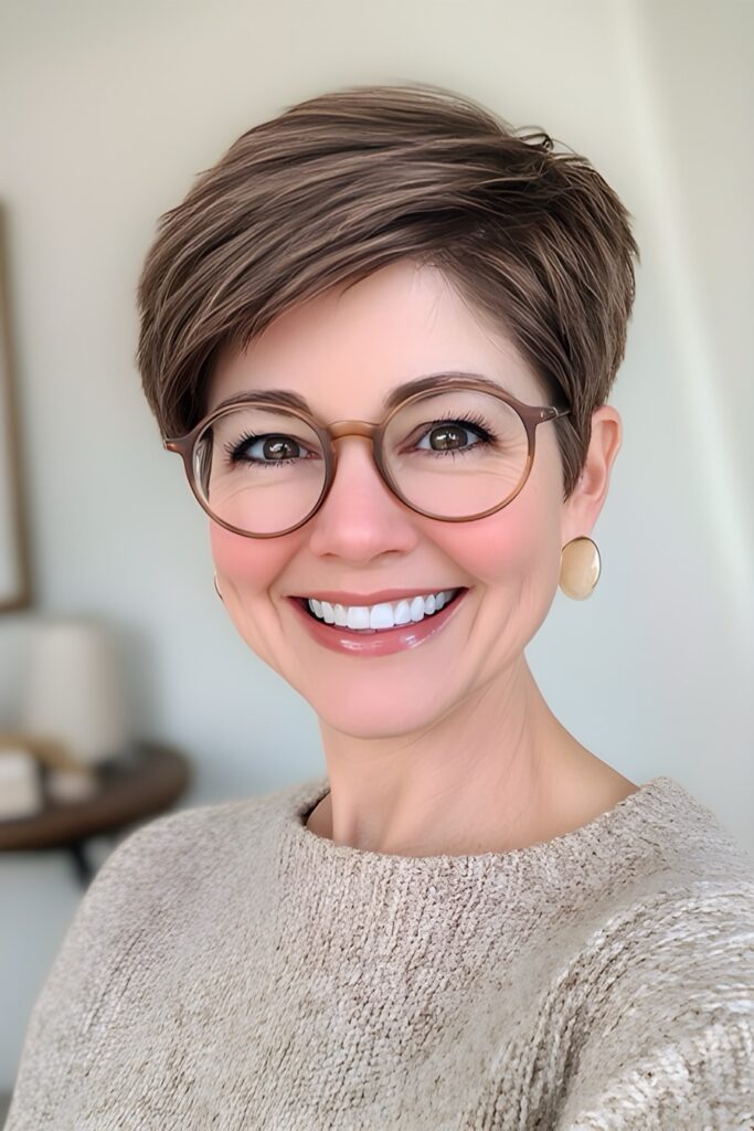 - For Round Faces: A side-swept pixie with height at the crown creates elongation.