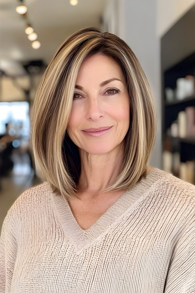 The bob is a go-to haircut for women over 50 because it’s versatile, chic, and works for almost every face shape.